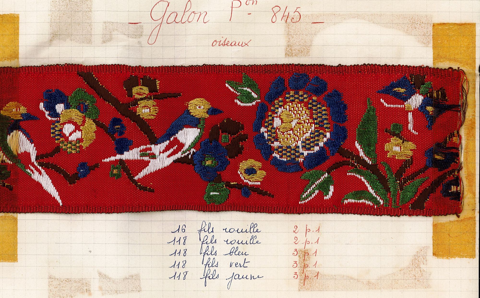 Enigme n°3 A votre avis, quel est ce document ? Indices Archive privée Apprentissage Cahier Tissu Solution 5Z46 - Cahier de galons (extrait) 1960 Il s'agit d'un galon (ruban de tissu épais servant pour l'ornement). Ce dernier est extrait d'un cahier de galons réalisés par une jeune fille en apprentissage en 1960. Il s'agit d'une archive privée, donnée à la commune de Rillieux-la-Pape en 2018.