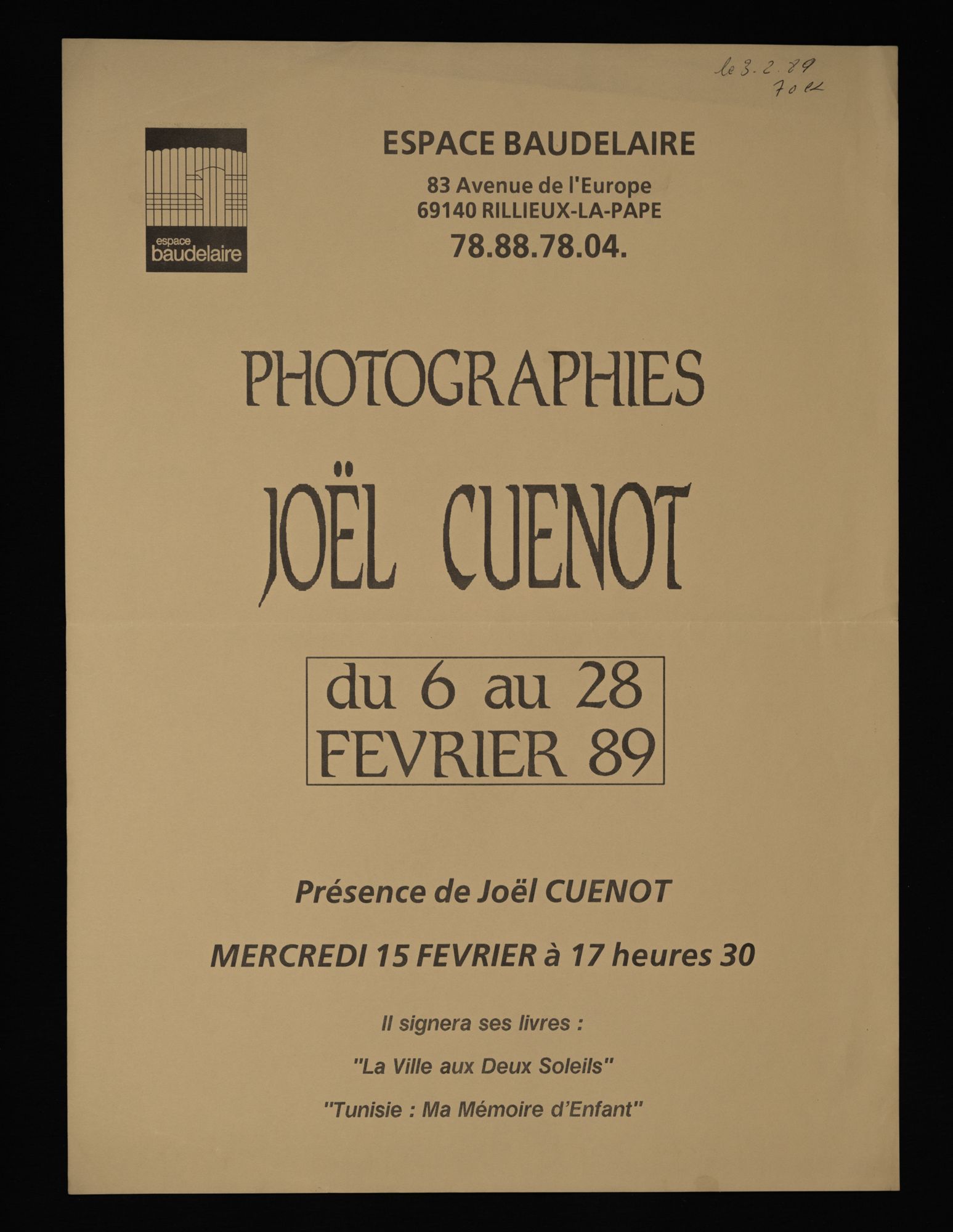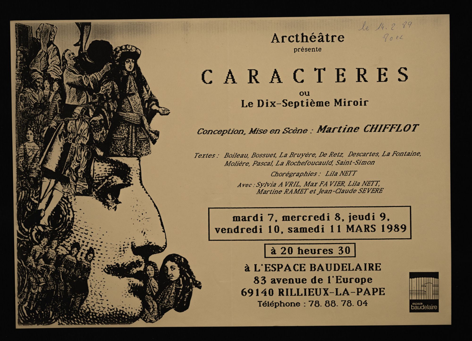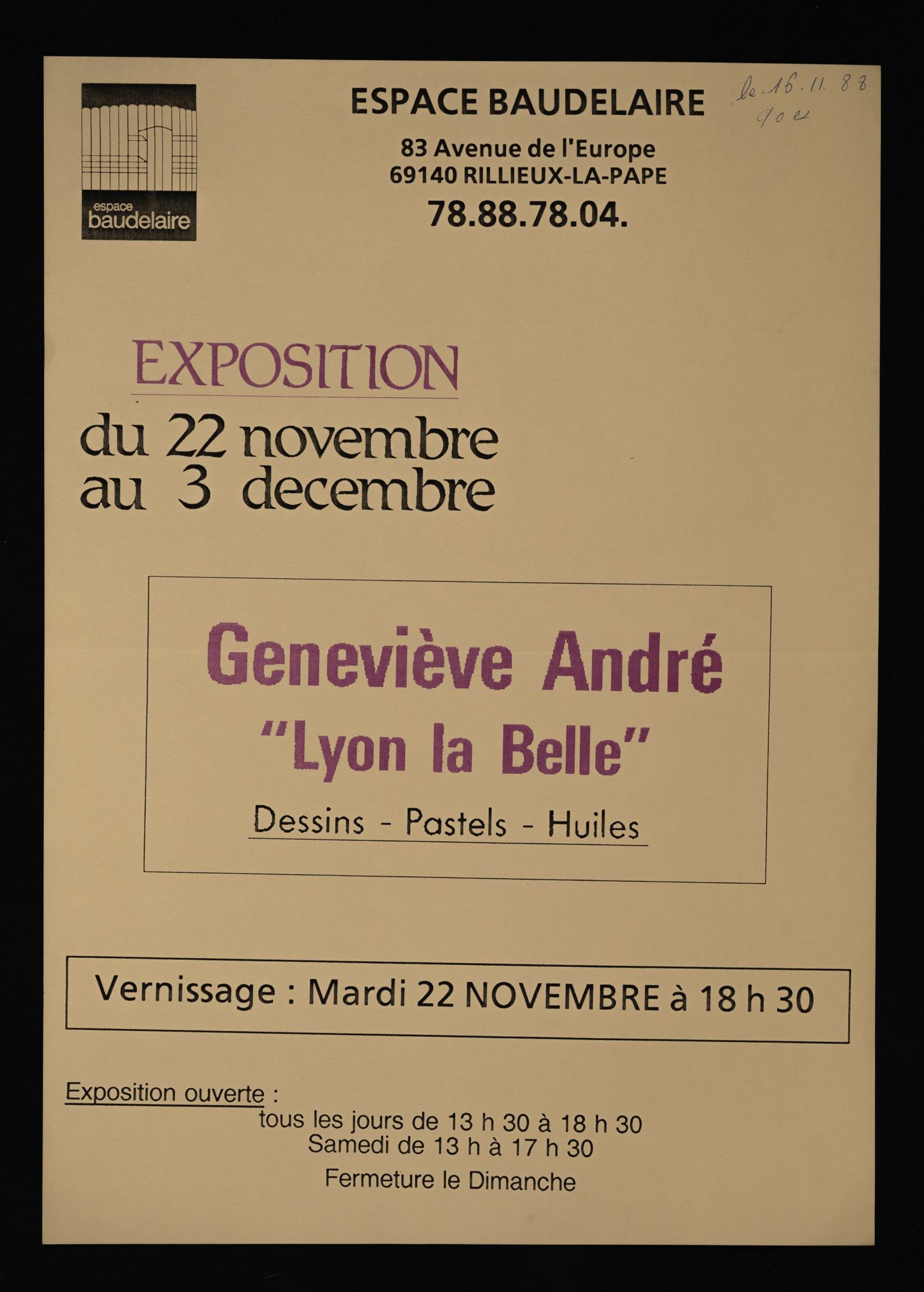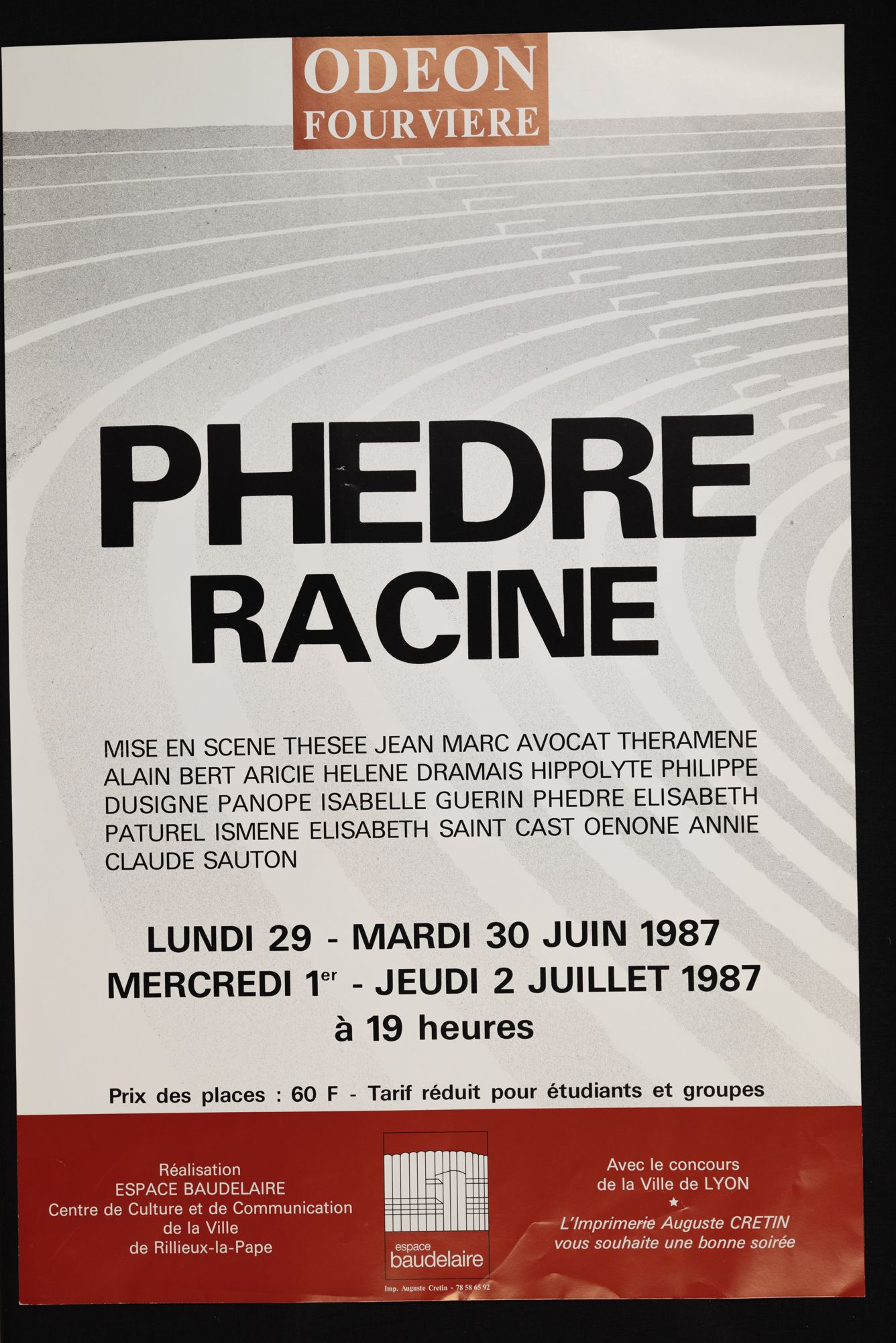 158W01 - Contact emploi, 2ème salon - 1986158W02 - Phèdre de Racine - 1987158W03 - 1ère foire d'art contemporain - 1987158W04 - Gala de la magie - 1988158W05 - "Lyon la Belle", dessins/pastels/huiles par Geneviève André - 1988158W06 - "Le grenier révolution, toutes les révolutions", "Denis Monnet, maître ouvier dans la tourmente révolutionnaire" - 1988158W07 - Photographies de Joël Guenot - 1989158W08 - Peintures de Anne Lutz et Camille Dandelot - 1989158W09 - Correspondances de Bruno Valera " - 1989158W10 - Carrefours parallèles de Rillieux, "losque la science rencontre les sciences parallèles" - 1988158W11 - "La medecine de l'enfant à la veille de la révolution" par le professeur P. Monnet - 1989158W12 - "Caractère ou le dix-septième miroir" mise en scèn par Martine Chifflot - 1989158W13 - "Contes populaire de tradition orale " par Césarr Gattegno - 1989158W14 - "Duo de musique des Andes avec deux musiciens de Los Chacos, Jean-Michel Cayre et Daniel Darmezin - 1989158W15 - "Steel Band" avec l'ensemble tropique du cancer - 1989158W16 - Gala de la magie - 1989158W17 - Grande exposition de modélisme ferroviaire - 1989158W18 - Affiche l'écriture de Philippe de Boissy, lecture publique - 1989158W18 - Flyer, l'écriture de Philippe de Boissy, lecture publique - 1989158W19 - "Marcel Pagnol, un merveilleux voyage en Pagnolie" - 1990158W20 - Festival de l'accordéon, gala-exposition en collaboration avec l'A.S.C.S - 1990