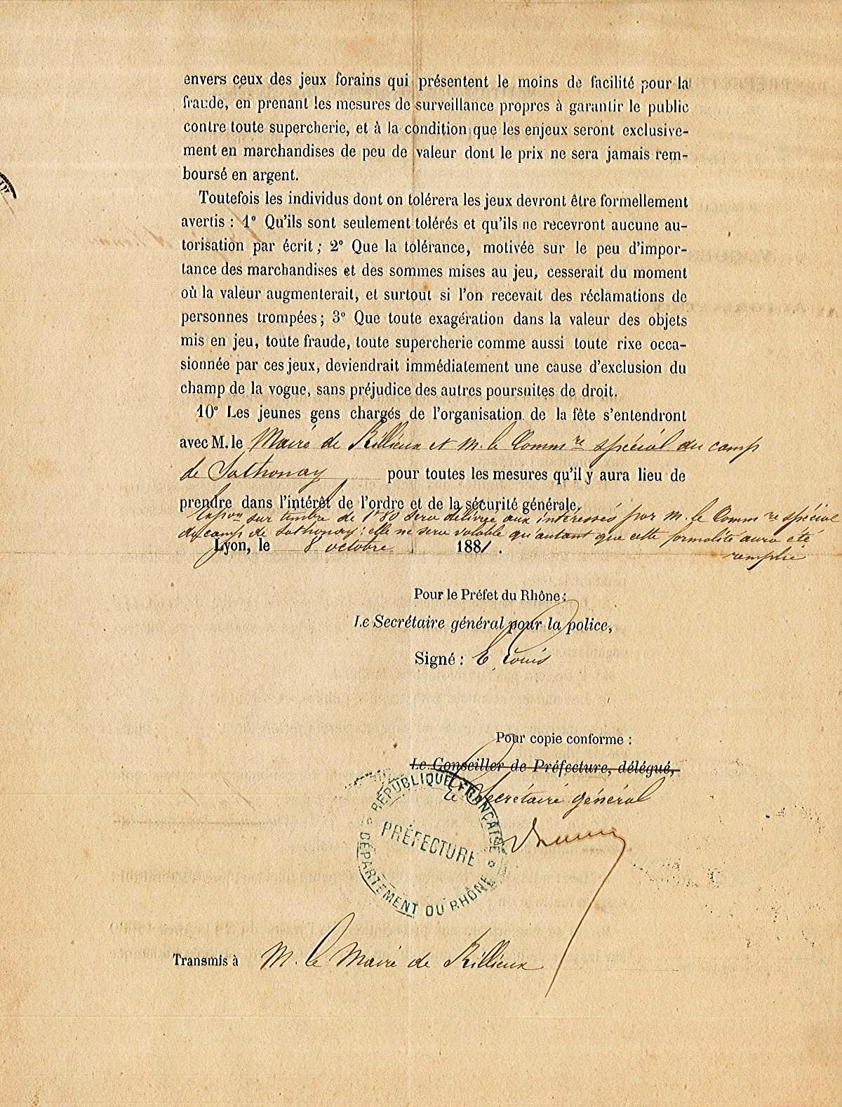 Au détour des délibérations du Conseil municipal, l’historien glane quelques rares renseignements. Ainsi, le 21 septembre 1873, le Conseil municipal fixe le prix des places à l’occasion de la fête patronale pour les faïenciers, billards, autres jeux, marchands de couteaux, manège de chevaux de bois. Cette liste nous donne une idée des attractions foraines présentes lors de cette vogue.