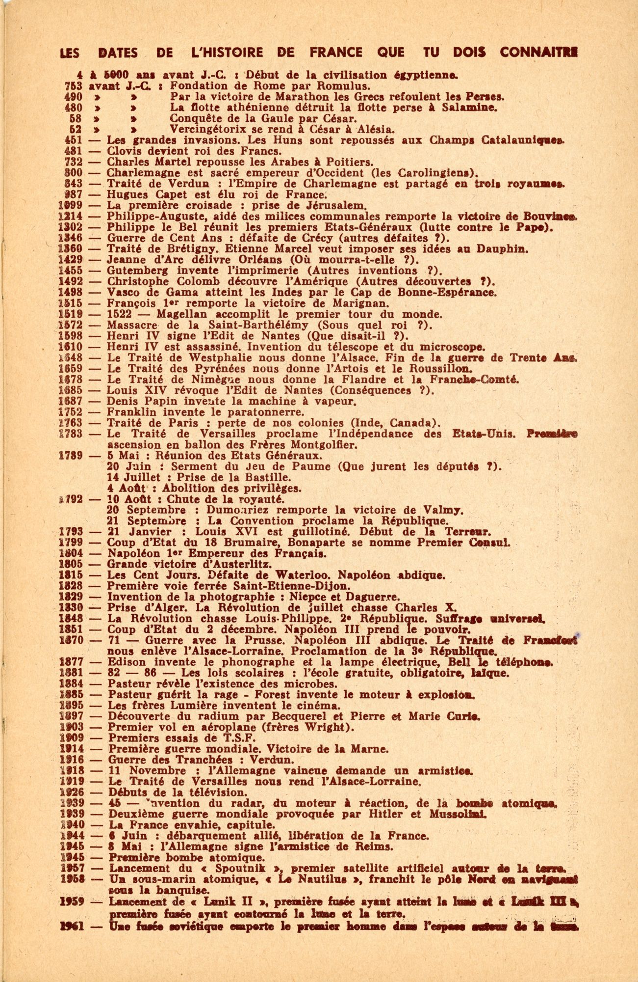 Par exemple, tout ce qui concerne les guerres, la Révolution française sur les droits de l’Homme et du citoyen en 1789, la première et seconde guerre mondiale : de nos jours, ce programme ne commence qu’en 4ème / 3ème alors qu’à l’époque il débutait déjà à la fin du troisième trimestre de primaire.