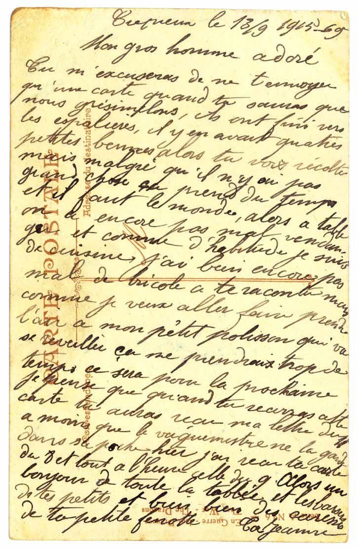 A Rillieux, Jeanne Bonnand demande ainsi de nombreux conseils à son époux, dans les premiers mois de l’année 1914, au sujet des récoltes et des semailles : ramassage de la luzerne, vendanges, achat de bois de chauffage…Les journaux et la propagande mettent en avant cette mobilisation féminine pour assurer le maintien de l’activité économique et assurer l’approvisionnement du front en munitions, nourriture et textiles.