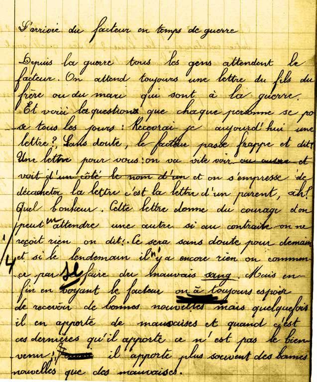 Michel Laffay, écolier rilliard, narre l’arrivée du facteur dans une rédaction écrite en 1916.
