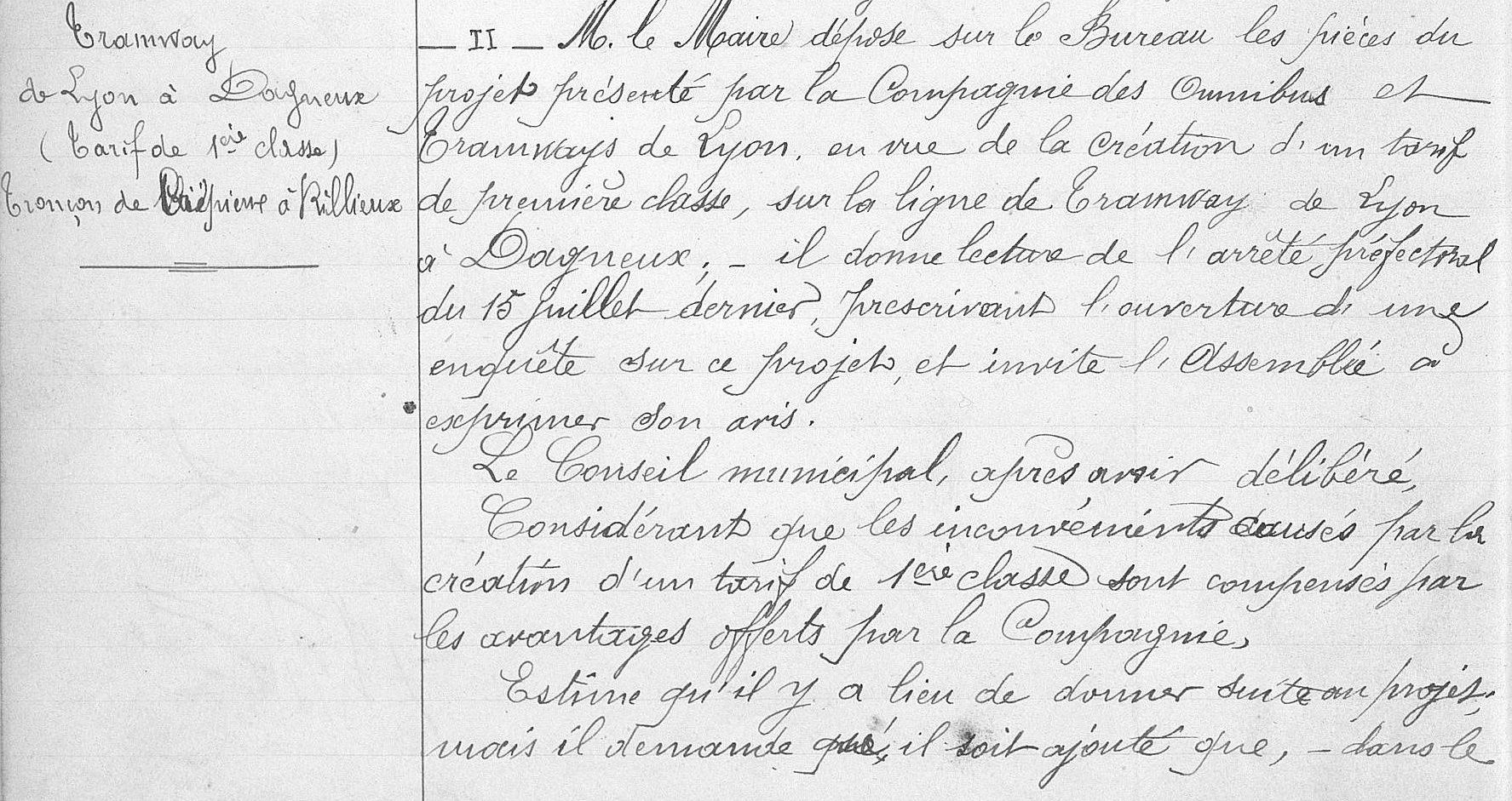Dès l’inauguration de cette première ligne, le Conseil municipal demande son prolongement jusqu’à Rillieux.